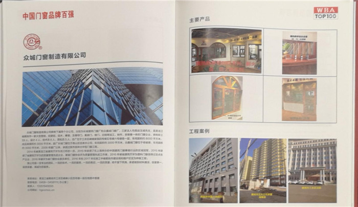 鶴崗地區(qū)入選中國門窗品牌百強(qiáng)的企業(yè)僅此一家——眾城門窗,您的放心選擇。